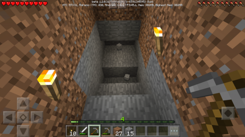 テンション急上昇でさらに掘り進めることにしました。途中でたいまつが無くなりましたが、追加で作って作業を続行します。