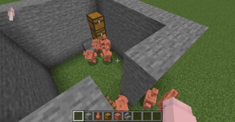銅ゴーレムを複数配置するとチェスト周り、ドアの入口などで詰まってしまうことがあります。