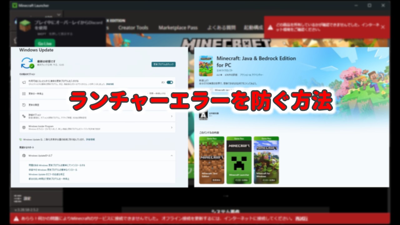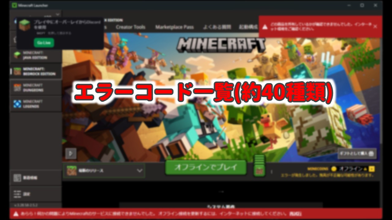 Minecraft(マイクラ)では、ランチャーの起動時やインストール時にエラーコードが表示されてゲームが起動できないトラブルが発生することがあります。