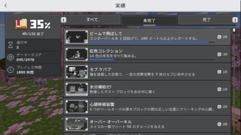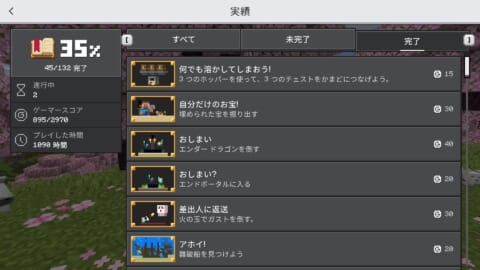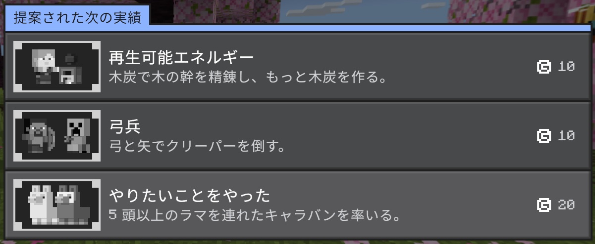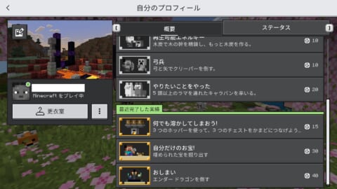 Minecraftでは、ゲーム内から簡単に実績一覧を確認できます。