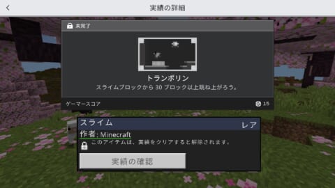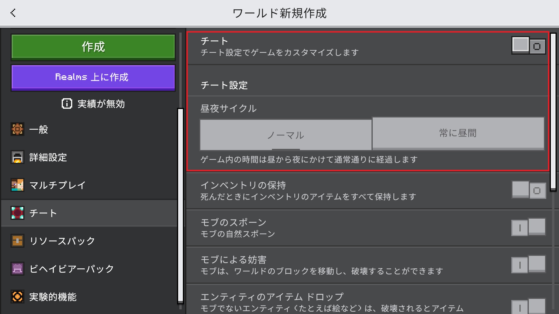 ※一度でもチートを有効にしたワールドやクリエイティブモードでプレイしている場合、そのワールドでは実績が解除できなくなります。