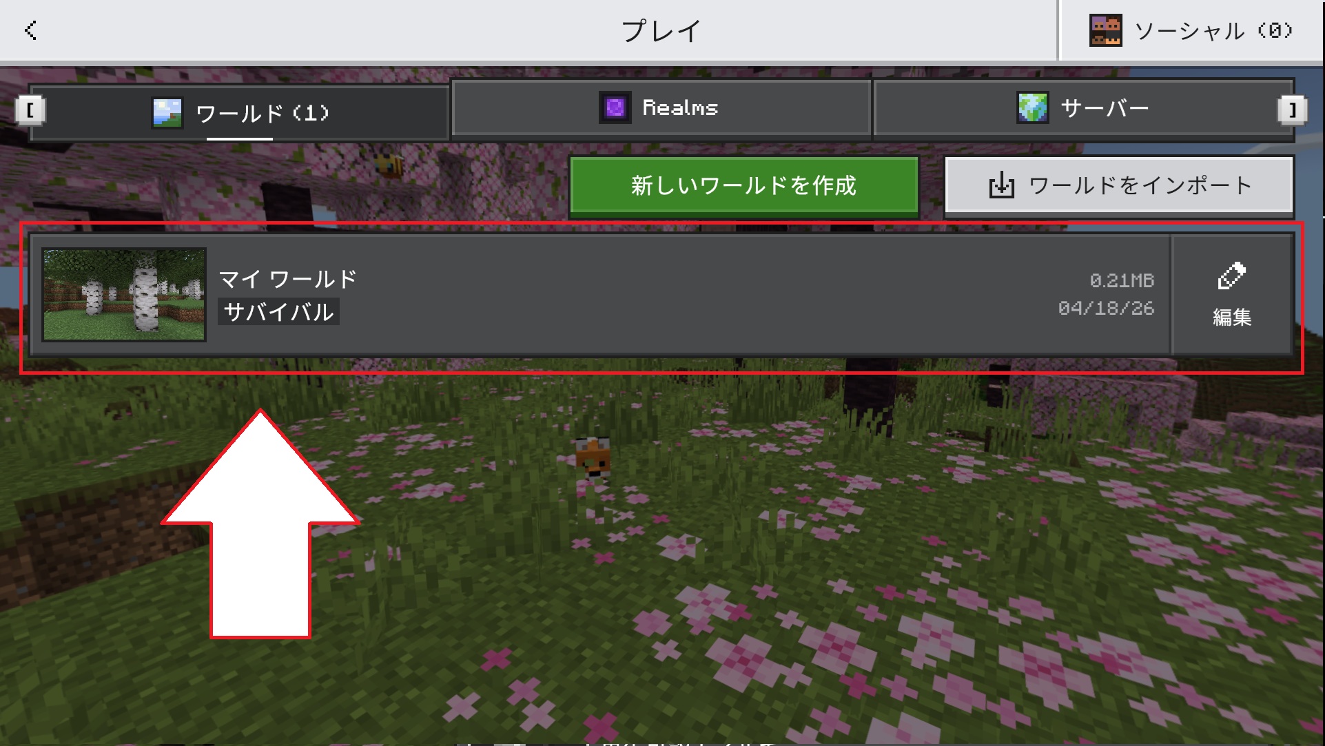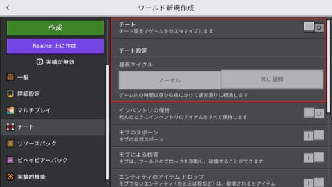 チートモードをオンにしていない『サバイバルワールド』を開く