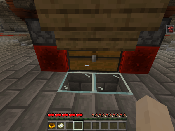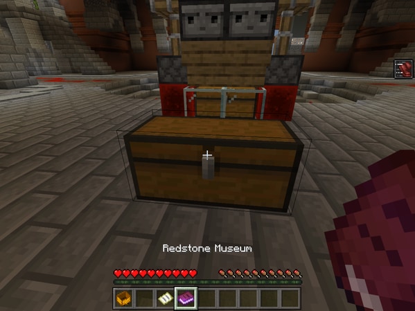 博物館の中にあるレッドストーン回路のパズルを解き、大きなチェストの裏にあるレッドストーンランプを全部点けましょう。