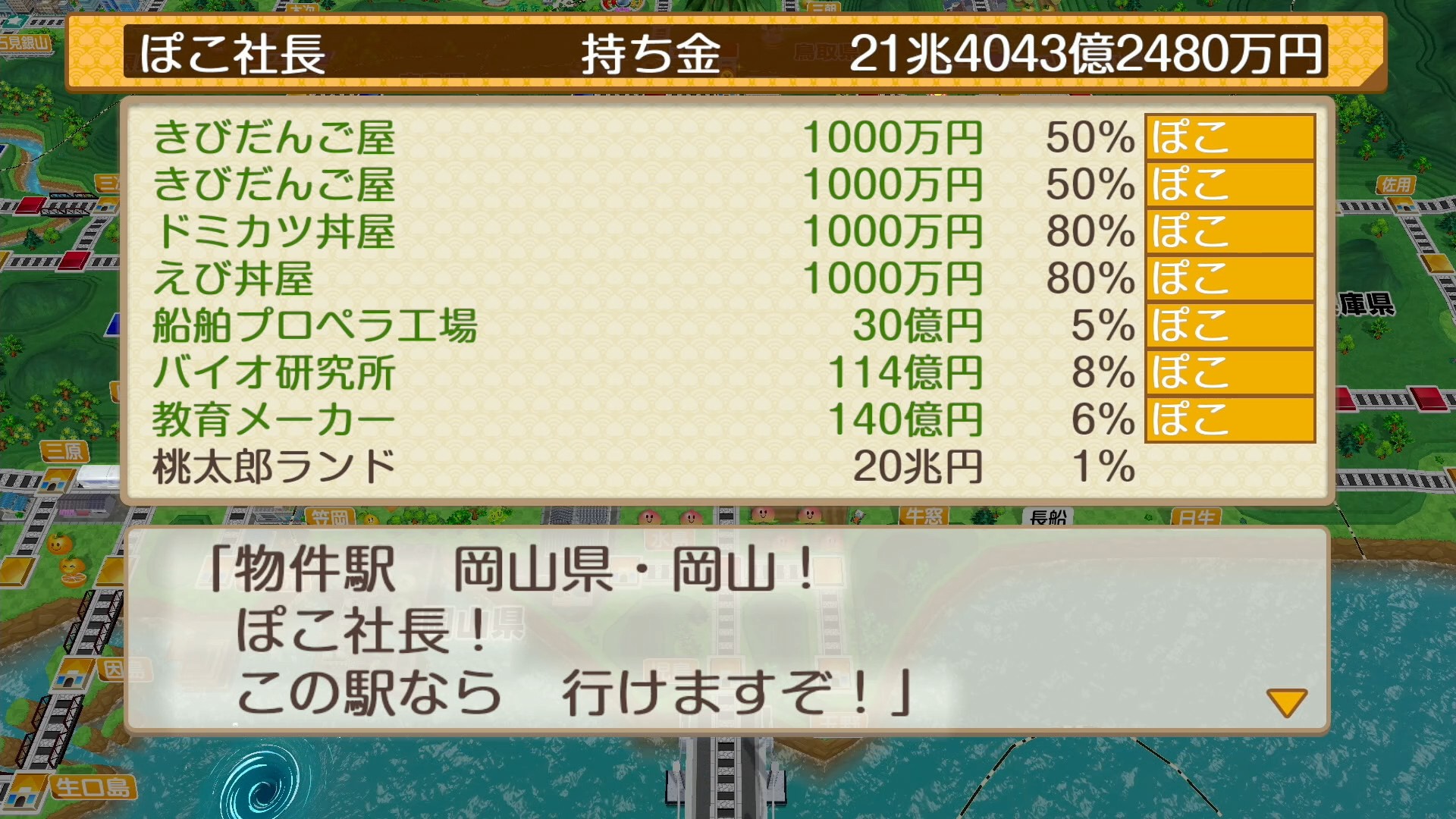 岡山県岡山の物件である「桃太郎ランド」は桃太郎電鉄2で購入できる最高金額の物件です。