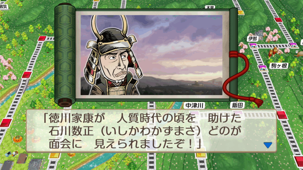 石川数正は、仲間に迎え入れたタイミングと、ターン開始時に一定確率で買われていない1000万円の物件からランダムで1つを継続的に渡してくれる歴史ヒーローです。