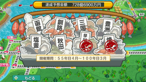 スタンプラリーを一番最初に達成したプレイヤーは、その年度の到着時に入手できる援助金に10の倍率をかけた現金が入手できます。