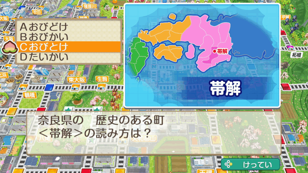 『桃太郎電鉄2(桃鉄2)』の西日本で発生する難読地名クイズについての記事です。