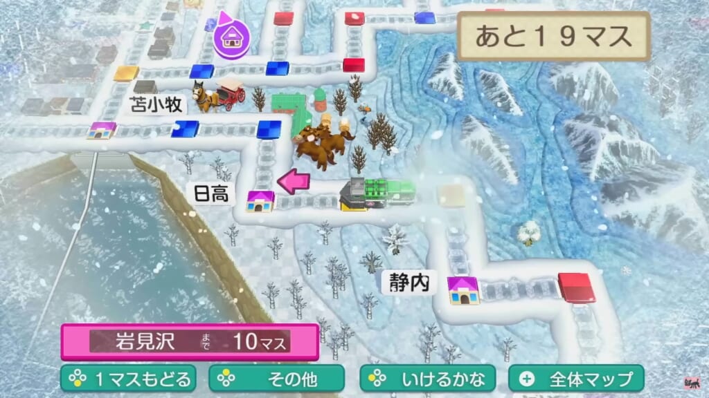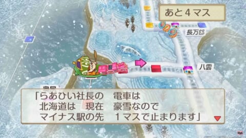 ただし、プレイ動画では 上陸した際に”豪雪のため1マス先で止まります”との表示がありました。