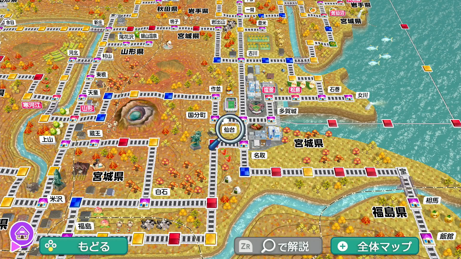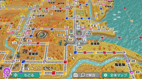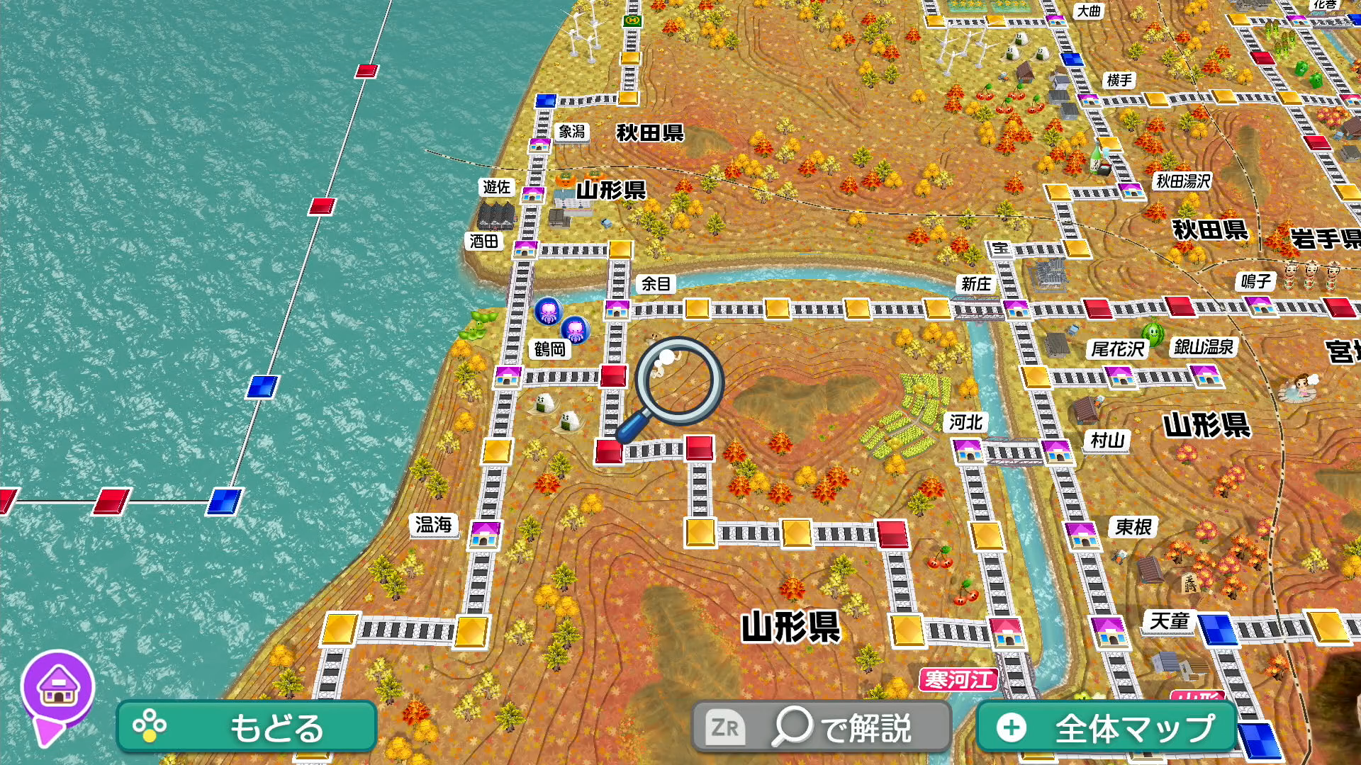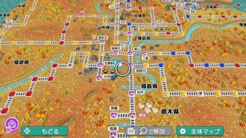 芭蕉の句に関する駅は赤マスが2つあるため、 へっちゃらカード で赤マスのマイナス効果を消したり、 イエローカード で青マス・赤マスをカードマスに変更するのもオススメです。