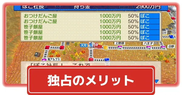 特に物件を独占できていない駅であれば 物件飛びカード 、他のプレイヤーが関連する物件駅に物件を持っている場合は 乗っ取りカード を使うことで比較的訪れやすいです。