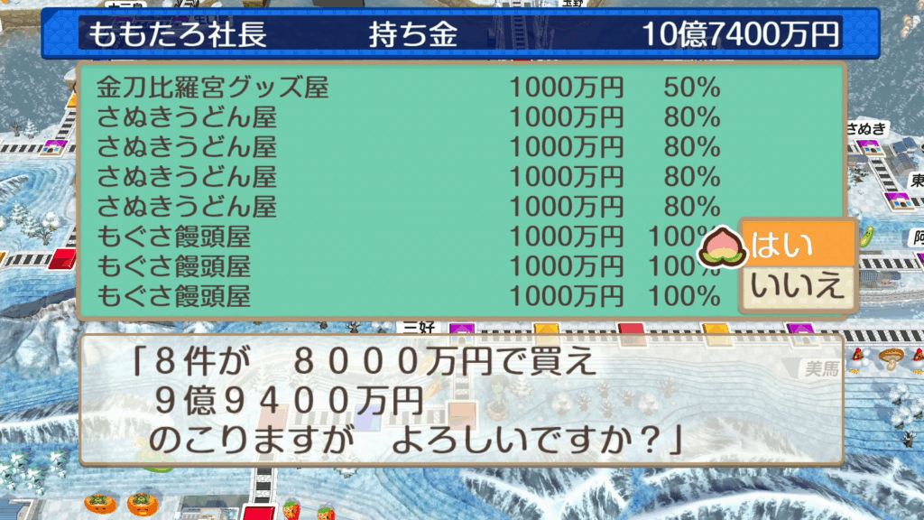 通常の桃鉄と同じく、連続ゴールによるボーナスは非常に大きくなっています。