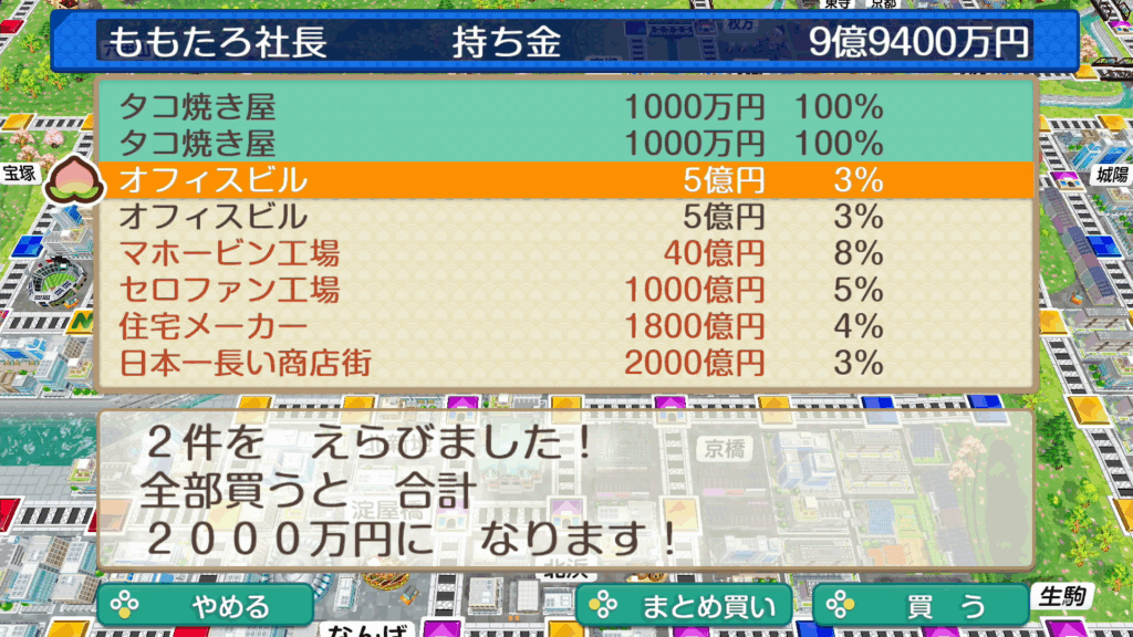物件駅に止まる際は、その物件駅にある物件を購入できるか否か、物件駅の独占が可能か、購入可能物件からの収益がどれだけかの3点のみに着目しましょう。