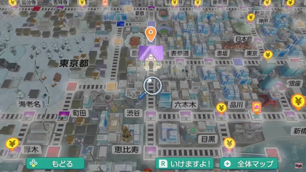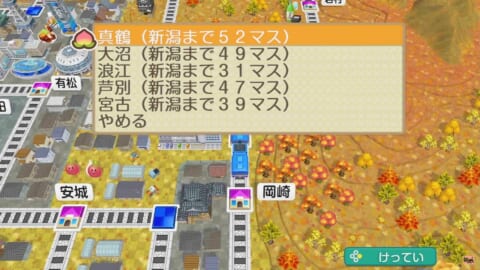 現在の持ち金で独占できる物件駅が候補に上がる。 候補地の中から1箇所へと移動し、物件を購入するか選べる。 |