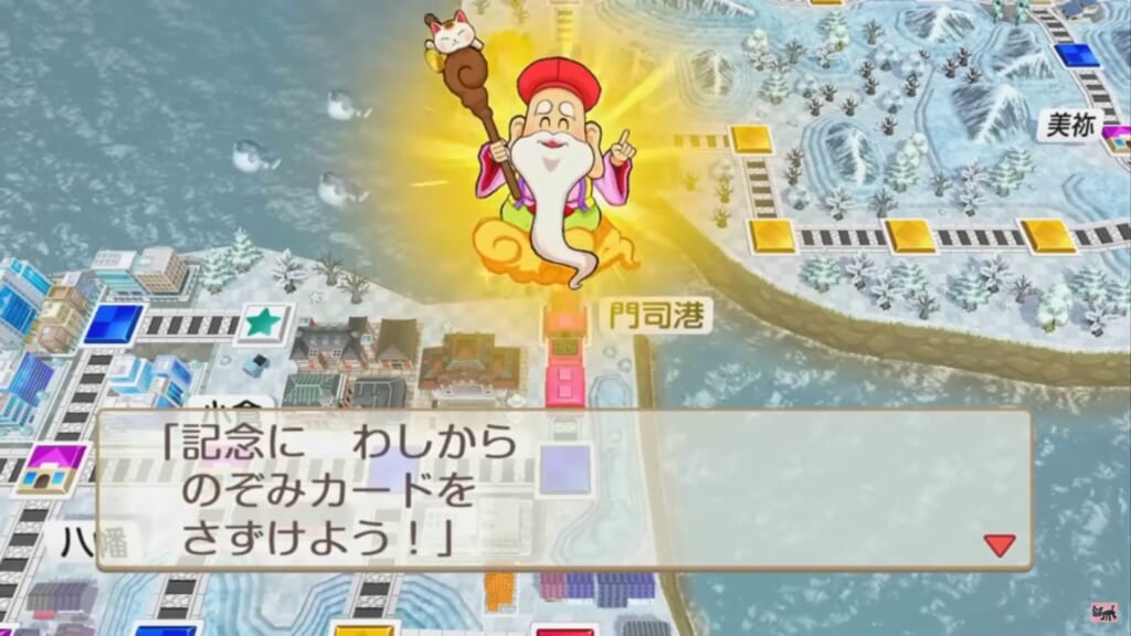 物件の購入数や、カード駅に停車した回数など、何らかのアクションが 10・30・50などのキリの良い数字になったときに記念仙人が現れ、レアなカードを渡してくれることがあります。