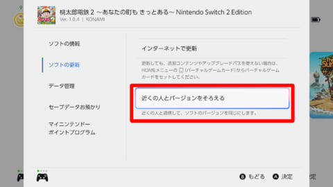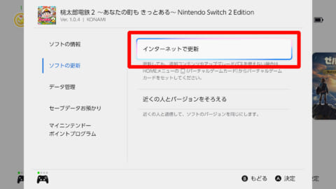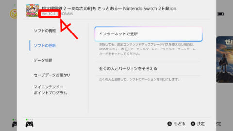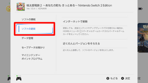 ソフトの更新方法はSwitchとSwitch2で変わりません。