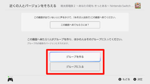 参加者の1人が「グループを作る」を選択し、残りの参加者は「グループに入る」を選択する |