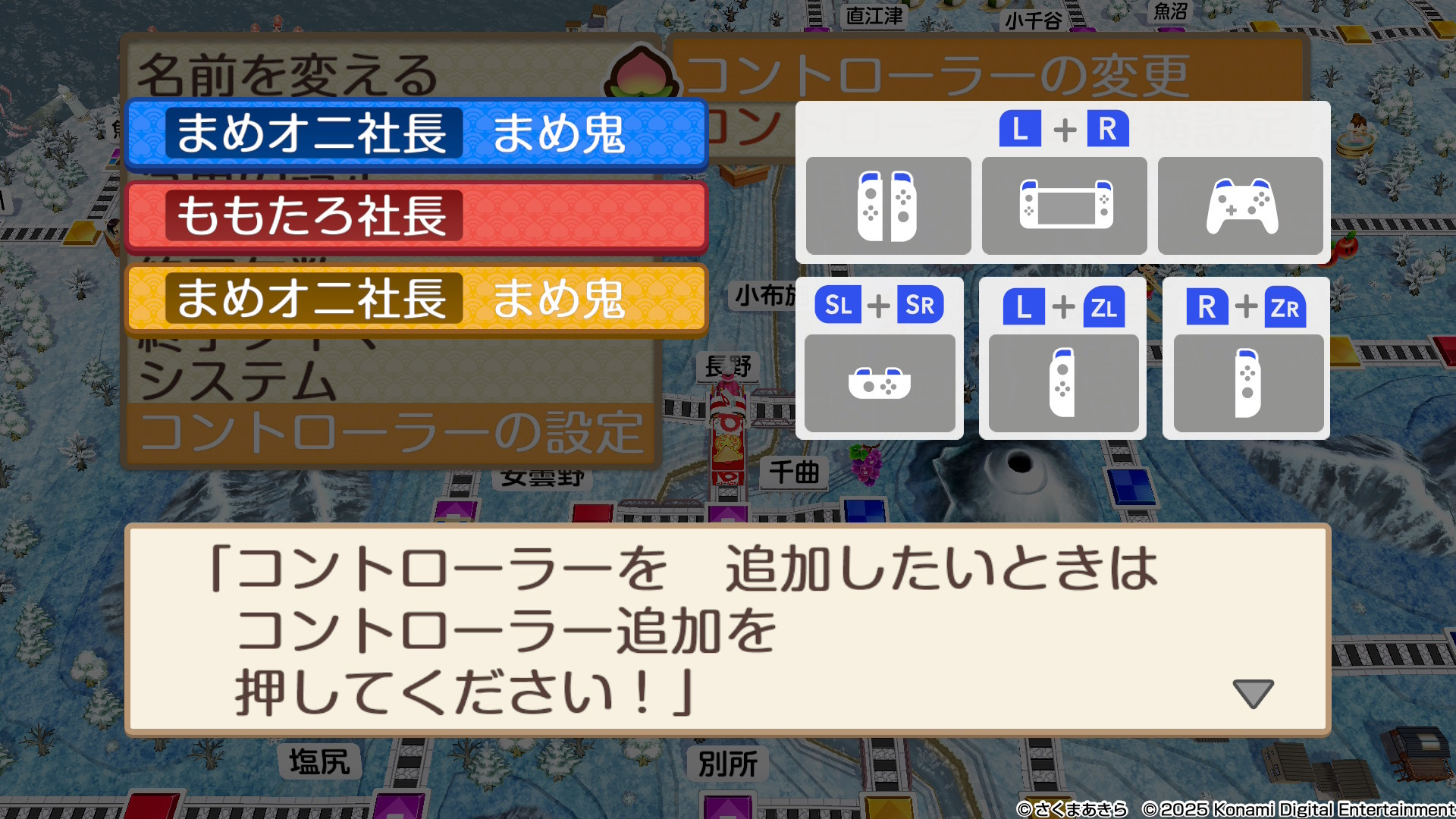『桃太郎電鉄2 ~あなたの町もきっとある〜東日本編+西日本編』で対戦するとき、コントローラーは何個必要なのか、コントローラーの登録・変更方法を解説します。