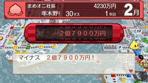 泣きっ面に蜂カードを所持している状態で赤マス(マイナス駅)に止まると、普段の16倍のマイナスを受けてしまいます。