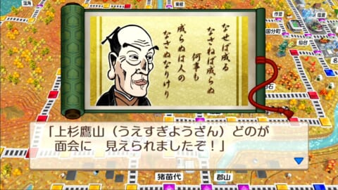 上杉鷹山の出現条件となる「 米沢 」は、独占金額が『9億円』と歴史ヒーローの中では比較的安めなので、序盤の内に味方にしておくことで長期間他のプレイヤーを妨害しやすくなります。