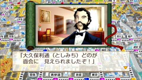 大久保利通は東日本マップの東京都にある「 四谷 」の物件を独占すると、次の行動開始時に出現する歴史ヒーローです。