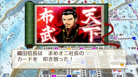 織田信長は他のプレイヤーのカードを破壊したり、貧乏神をキングボンビーに変身させたりと強力な妨害効果に加え、低確率ですがいきなり目的地にたどり着ける強力な効果もあるため、お金が貯まったら早めに味方にしておくことで、今後の展開を有利に進めることができます。