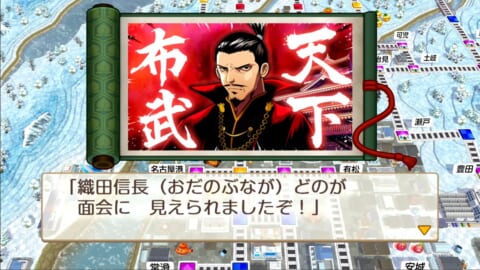 織田信長は東日本マップの愛知県にある「 名古屋 」の物件を独占すると、次の行動開始時に出現する歴史ヒーローです。