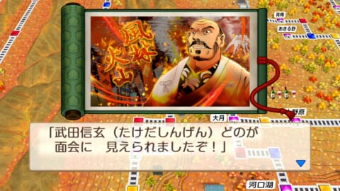 武田信玄は東日本マップの山梨県にある「 甲府 」の物件を独占すると、次の行動開始時に出現する歴史ヒーローです。