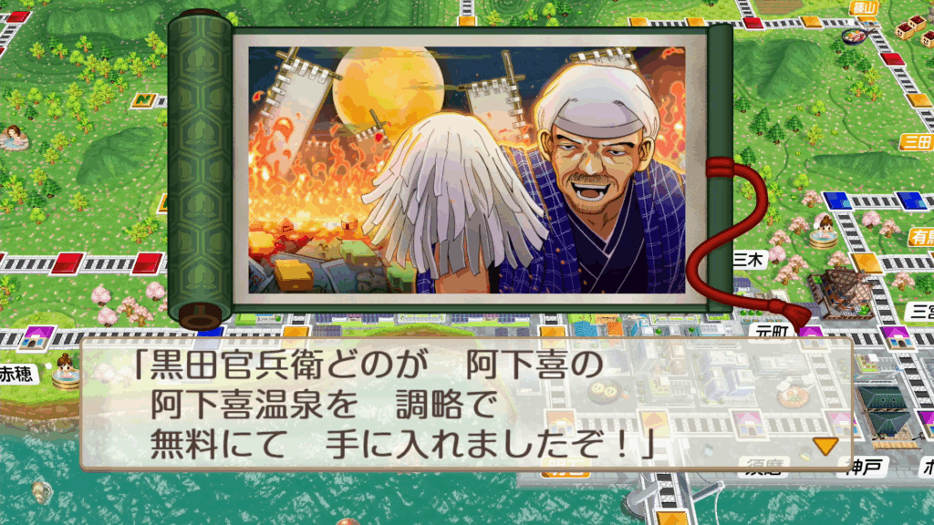 黒田官兵衛は、兵庫県にある 姫路 の物件を独占した次のターンに加勢してもらうかどうかを選択できます。