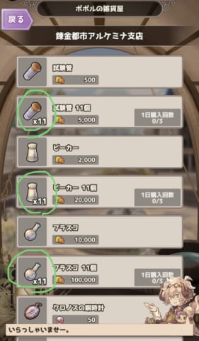 試験管やビーカーなどは、錬金で作ることもできますが、