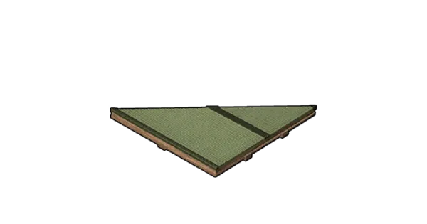 説明壁の上に建てて雨風をしのぐための三角屋根。上面が畳になっている。和風でおしゃれな建築ができる。