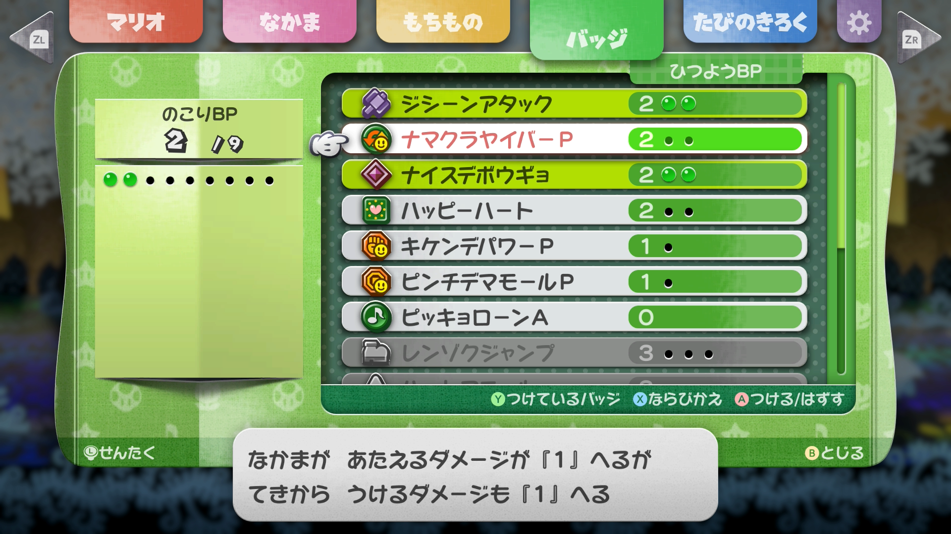 「ナマクラヤイバーP」を付けていると仲間キャラクターの攻撃力が下がり、ダメージには期待できなくなります。「ファイアフラワー」などのアイテムで攻撃してください。
