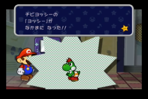ペーパーマリオRPGの仲間キャラクター「チビヨッシー」の使い方を紹介する記事です。