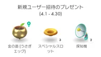 コードから登録すると、下記もらえるようです。 金の苗 スペシャルバージョン1個 スペシャルスロット3個 探知機2個