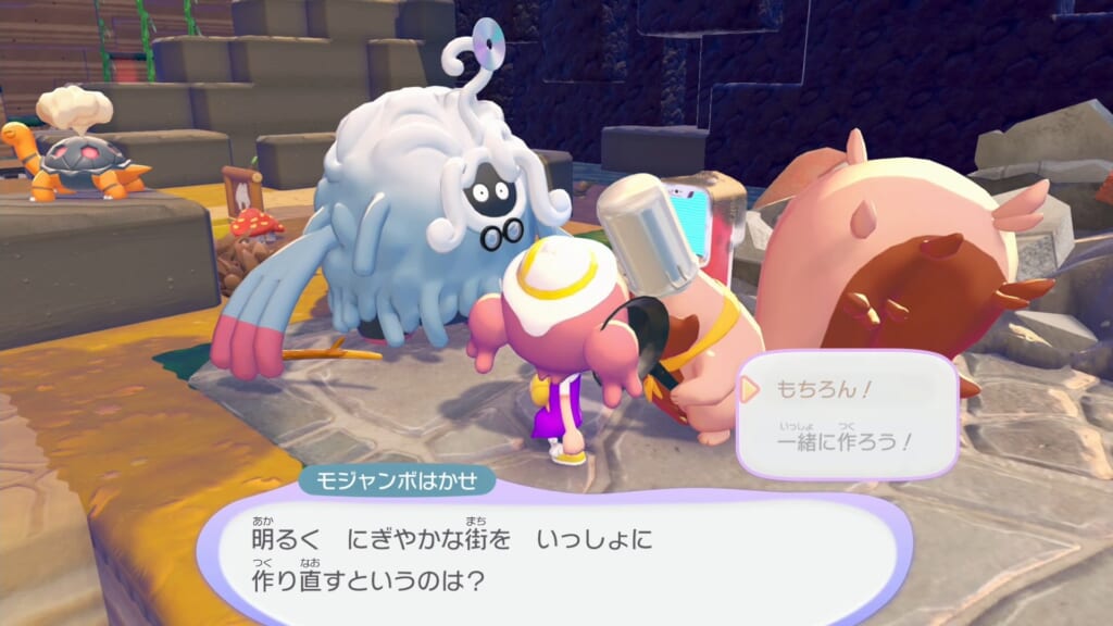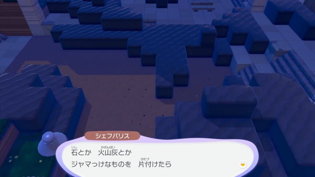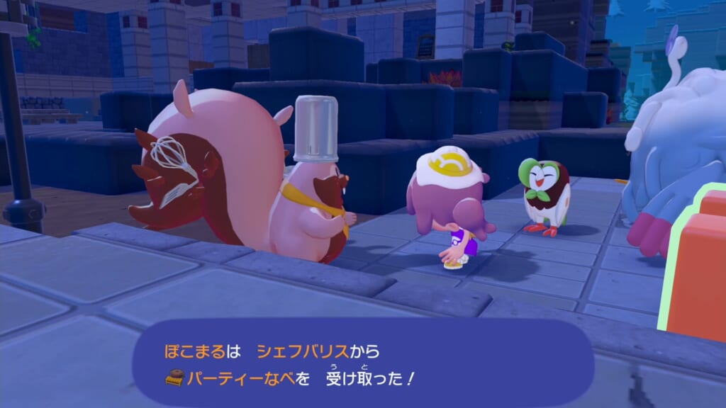ポケモンセンターの前に移動したシェフヨクバリスと会話し、街の再建を進めます。