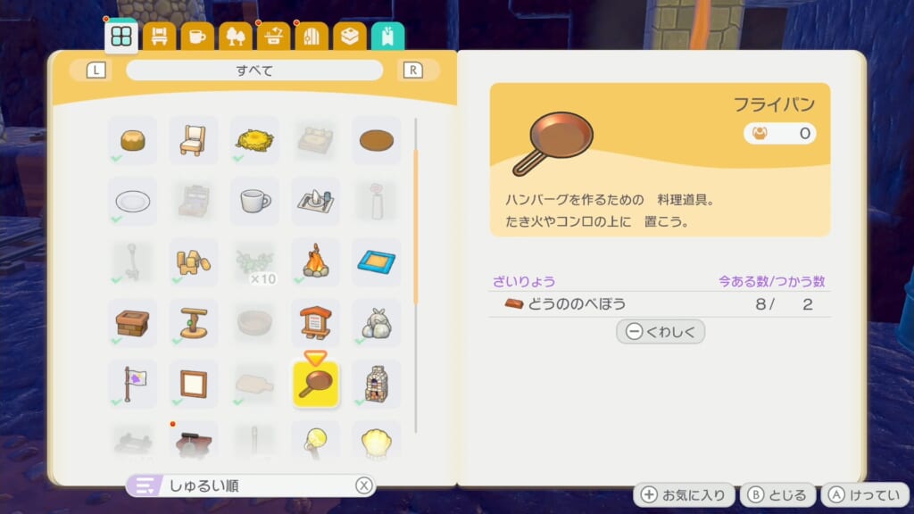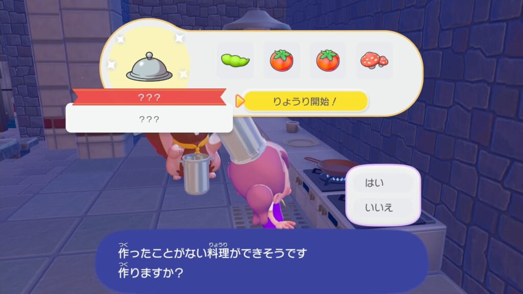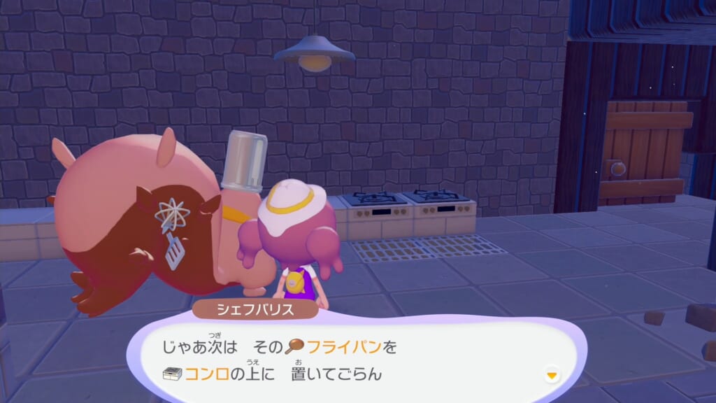 フライパンをAボタンで調べ料理を作ります。