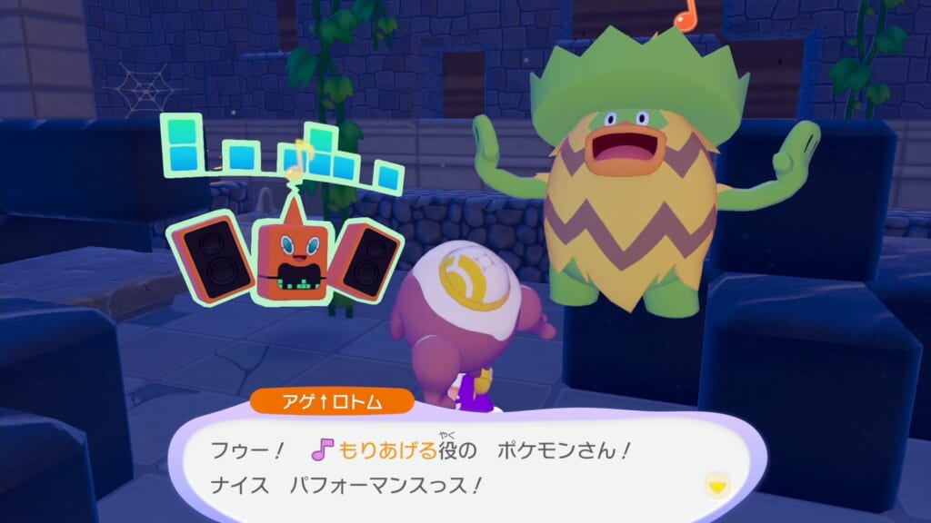 アゲ↑ロトムに再び話しかけ、盛り上げるのが得意なポケモンを連れてきましょう。