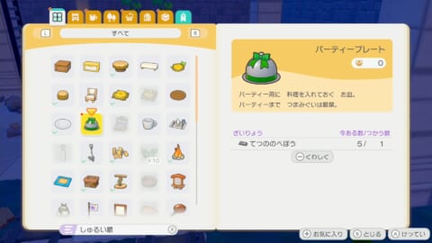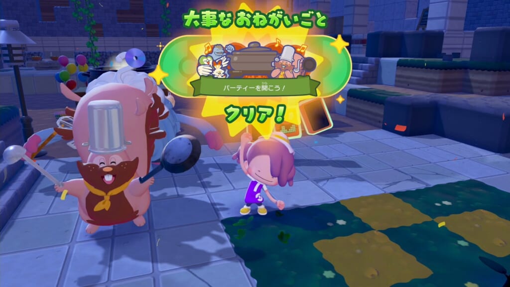 料理を5つ作り、パーティ会場内にパーティープレートを置いて入れるとクリアとなります。