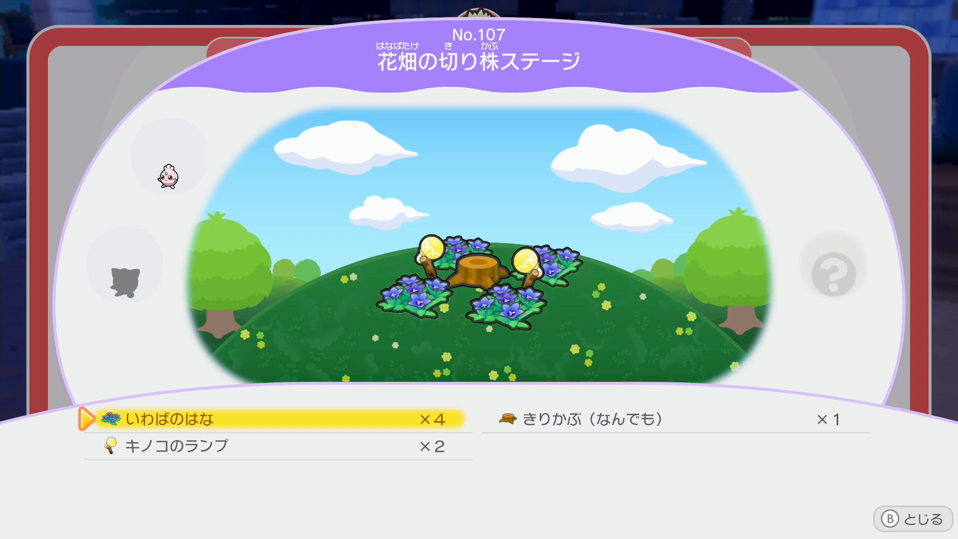 ププリンやプリンが出現する「花畑の切り株ステージ」を作ります。