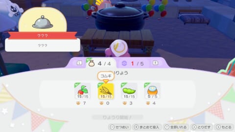 下記で紹介している食材を全て入れ、シェフヨクバリスを含む5匹のポケモンに作業をしてもらい、約10分ほど待つとカレーが完成します。