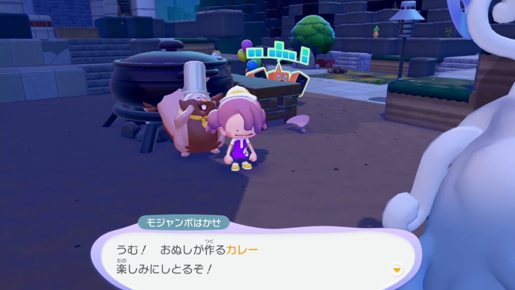カレーを作り終え、イベントが進行したら モジャンボはかせと話します。