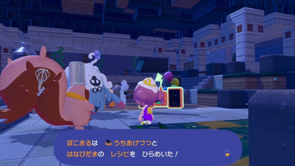 ボルケニオンが花火を打ち上げてくれ、新たにうちあげづつはなびだまの2つのレシピを習得します。