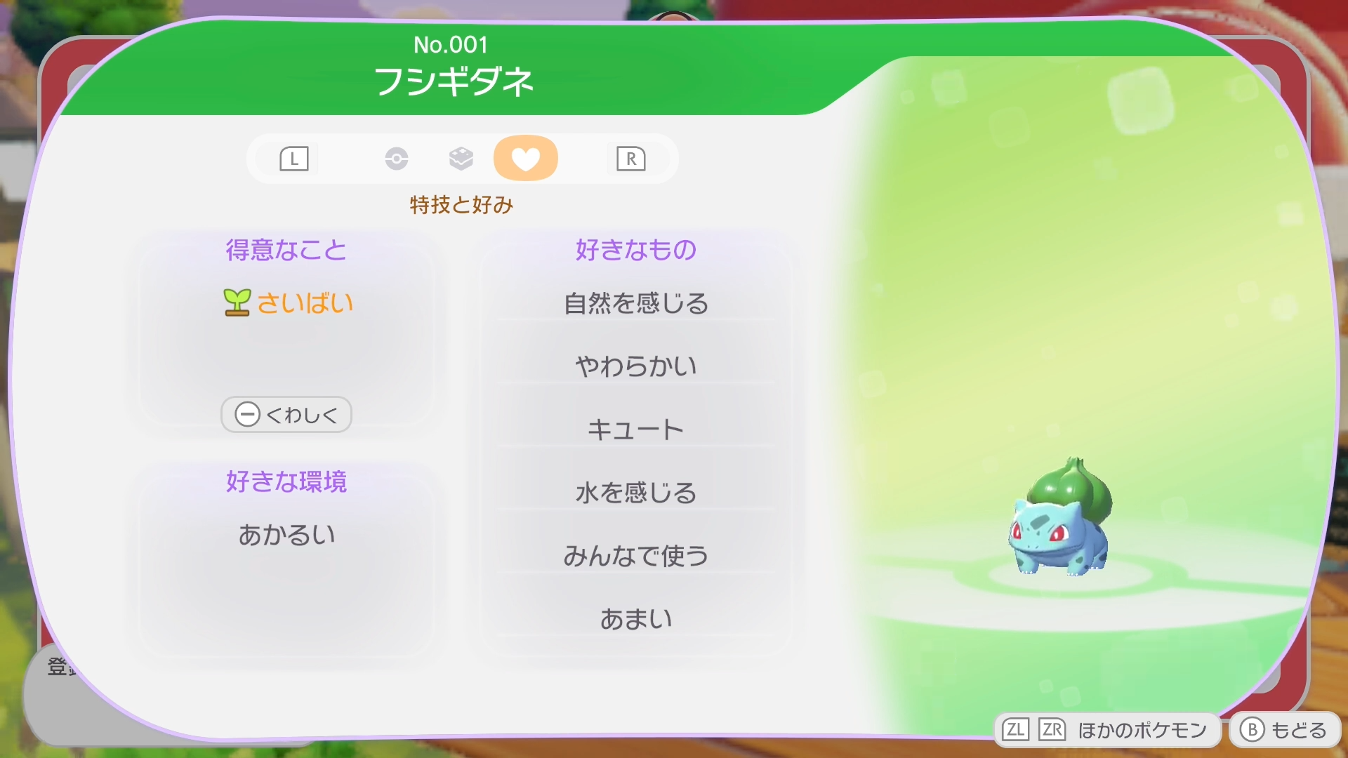 好みの味の料理をあげることでポケモンからの好感度が上がりすみごこちを上げることができます。