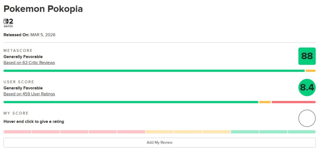 ぽこ あ ポケモンは、3月5日時点の海外のレビューサイト「Metacritic」の評価”メタスコア”では、100点満点88点と 非常に高評価の作品です。