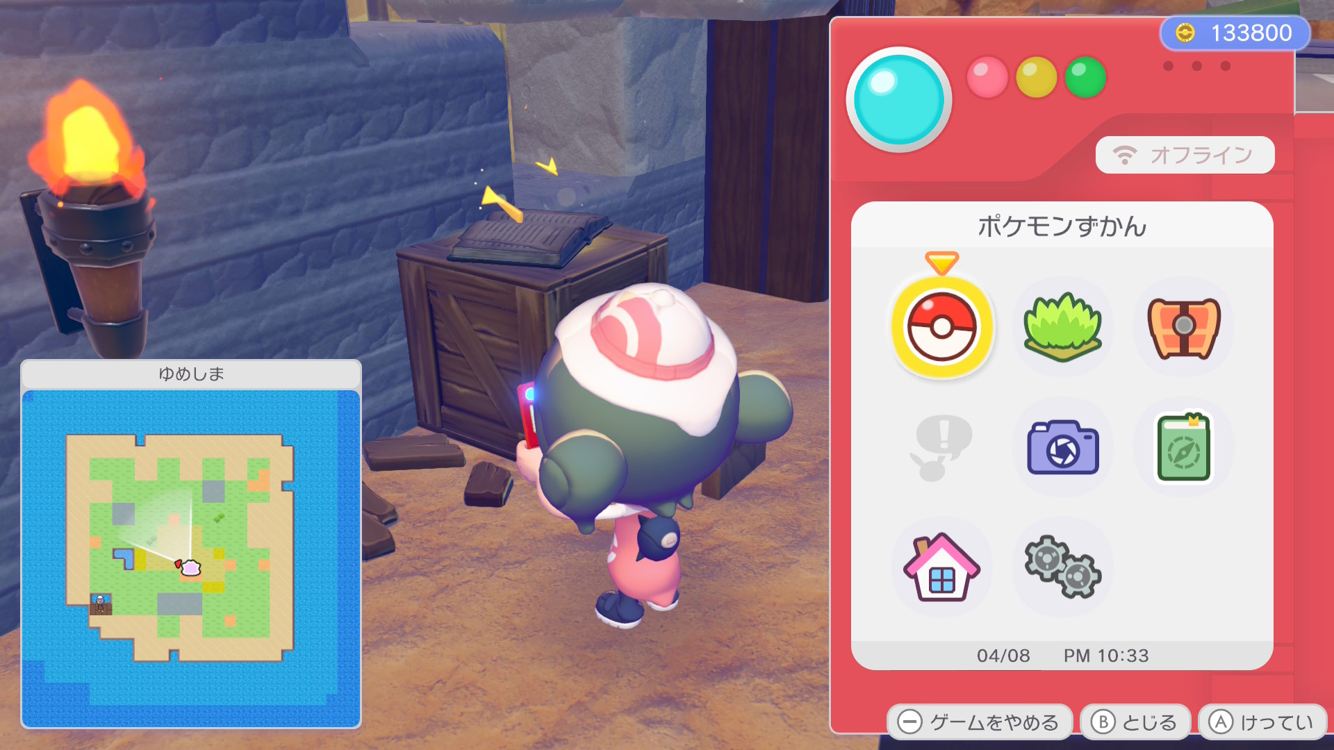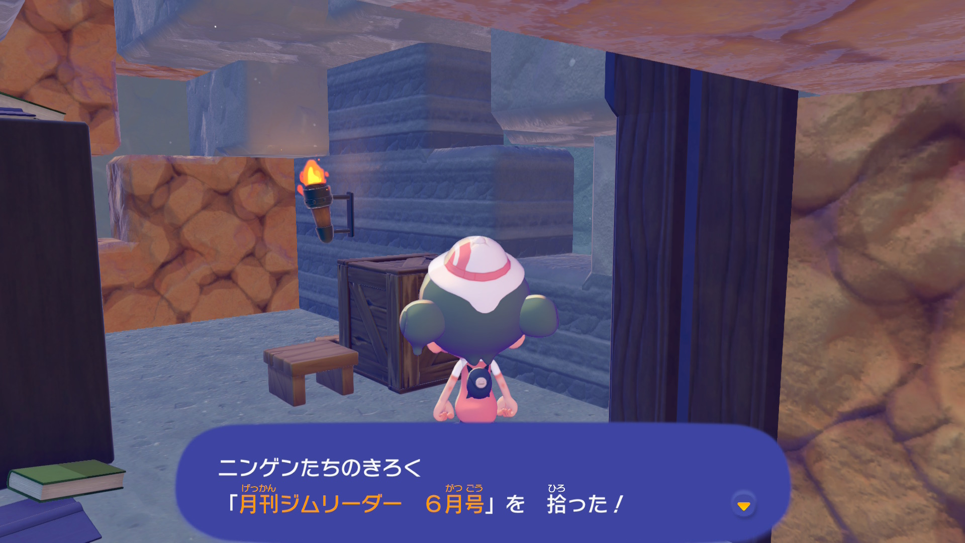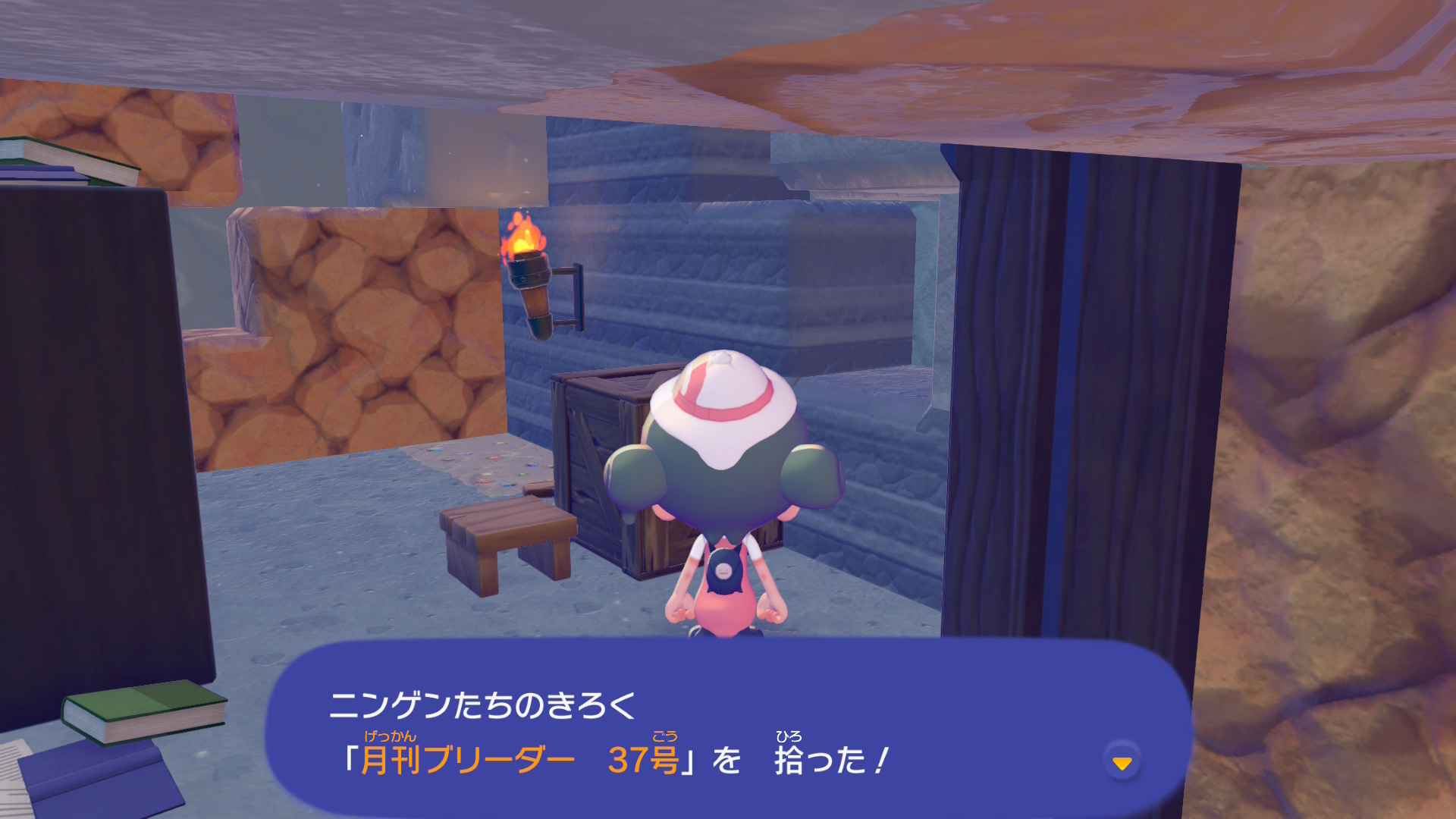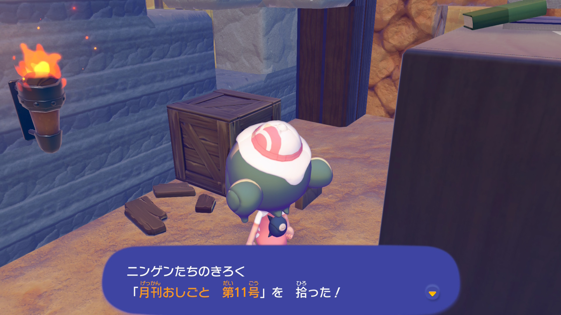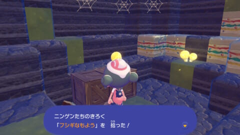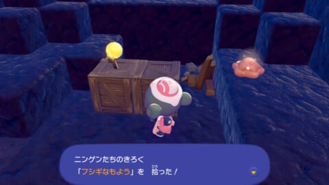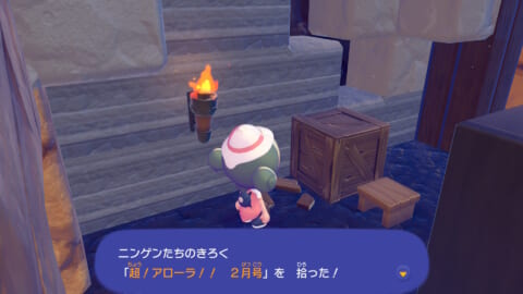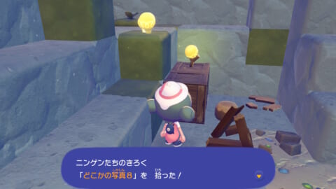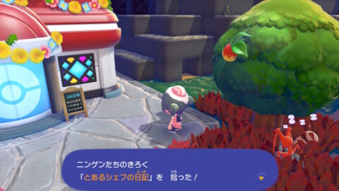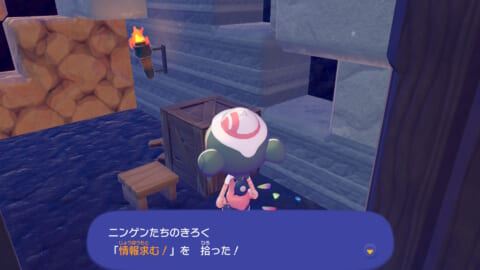 「ニンゲンのきろく」は基本的にフィールド上に落ちているので、近づいて「A しらべる」を押せば拾うことができます。キラキラ光っているアイテムを見つけたら拾ってみましょう。