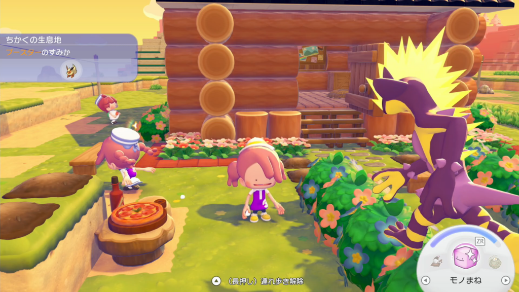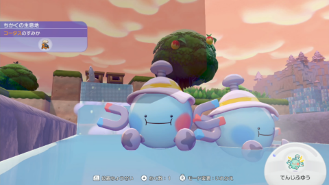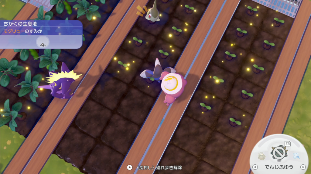 他のエリアのポケモンを1匹まで連れていくことができるので、「きりさく」が得意なストライクや、「はつでん」が得意なパモなど、現状必要になるポケモンを1匹連れていくと作業の効率が上がります。