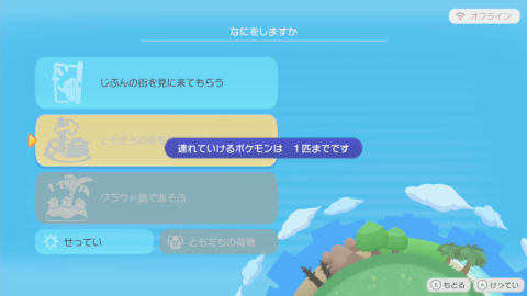 2匹以上のポケモンを連れている状態では、クラウド島で遊ぶことはできません。