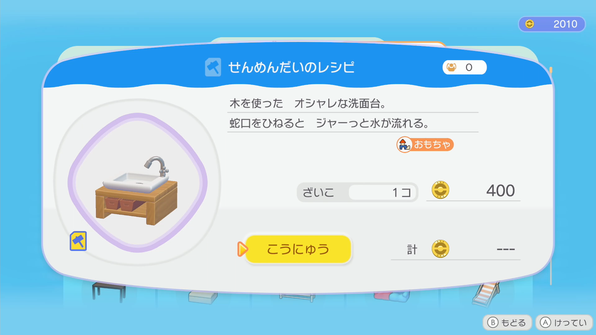 家具入手後はそれぞれのエリアでレシピの販売が解禁され、いつでも作れるようになります。