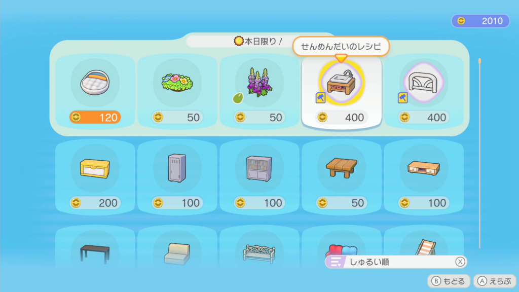 そのため、Nintendo Switch2の本体時間を変更することでショップのラインナップをリセットし、より効率よく新たなレシピを探すことができます。