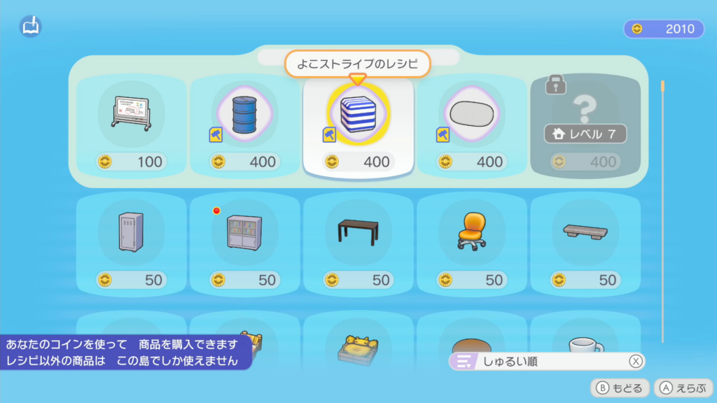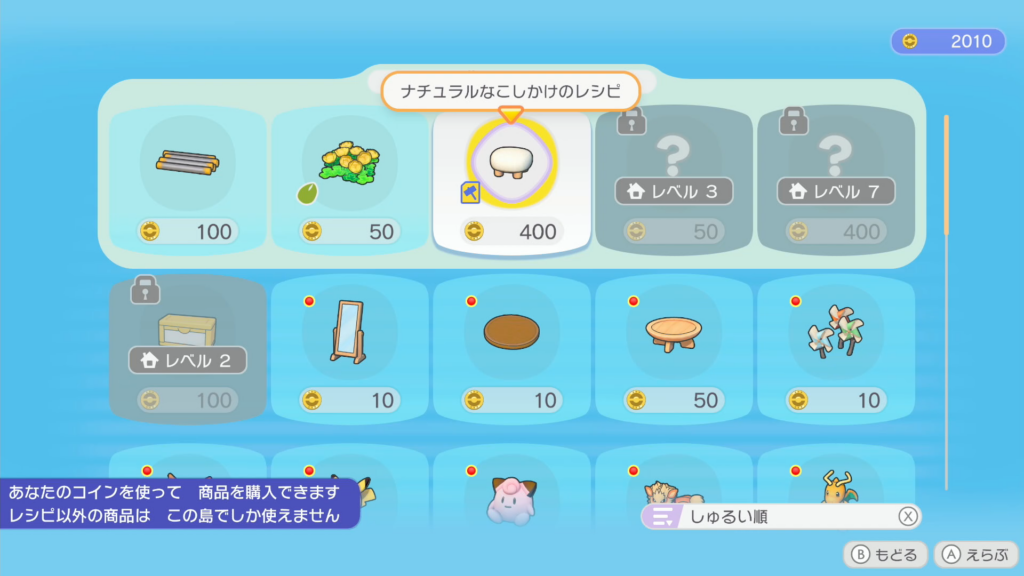 なお、日替わりレシピも 環境レベルが足りないと購入できないことがあるため、クラウド島の環境レベルも可能な限り上げておくのがオススメです。