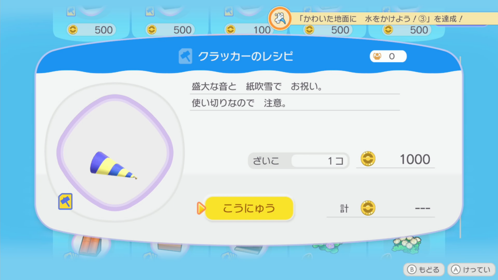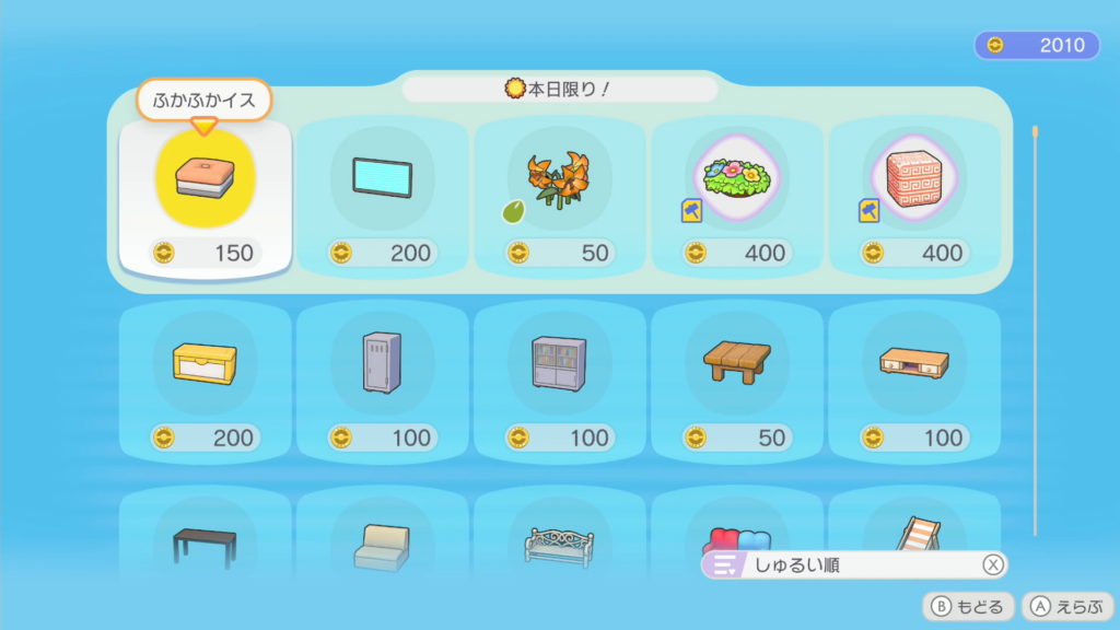 スプリンクラーなどの農業に使える機能がついたものや、ミニすいもんのように回路や街作りに役立つアイテムが出ることもあるので、毎日チェックしておくのがおすすめです。